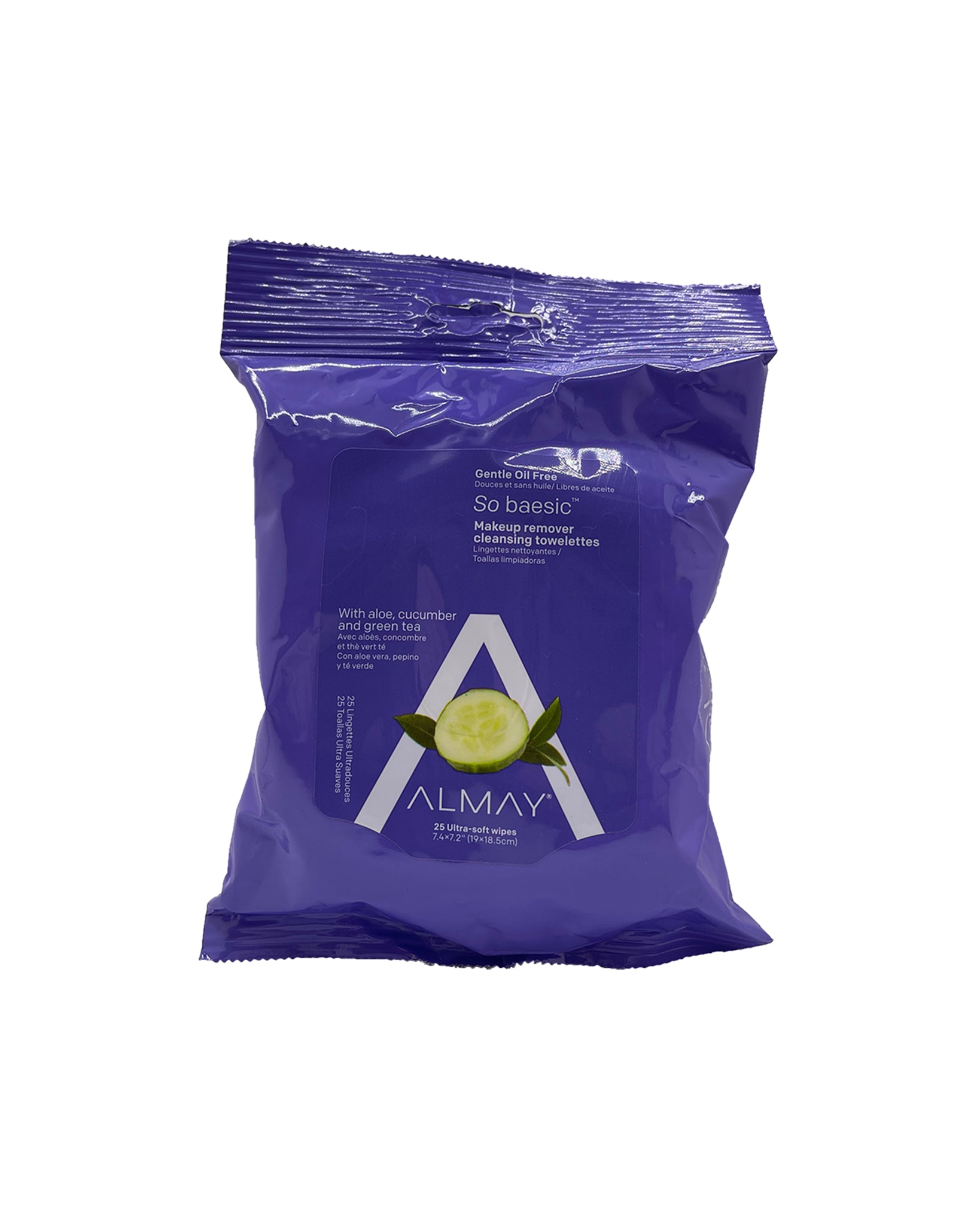 ALMAY GENTLE OIL FREE BAESIC MAKEUP REMOVER CLEANSING TOWLETTES - ALOE, CUCUMBER AND GREEN TEA (25 WIPE PACK)